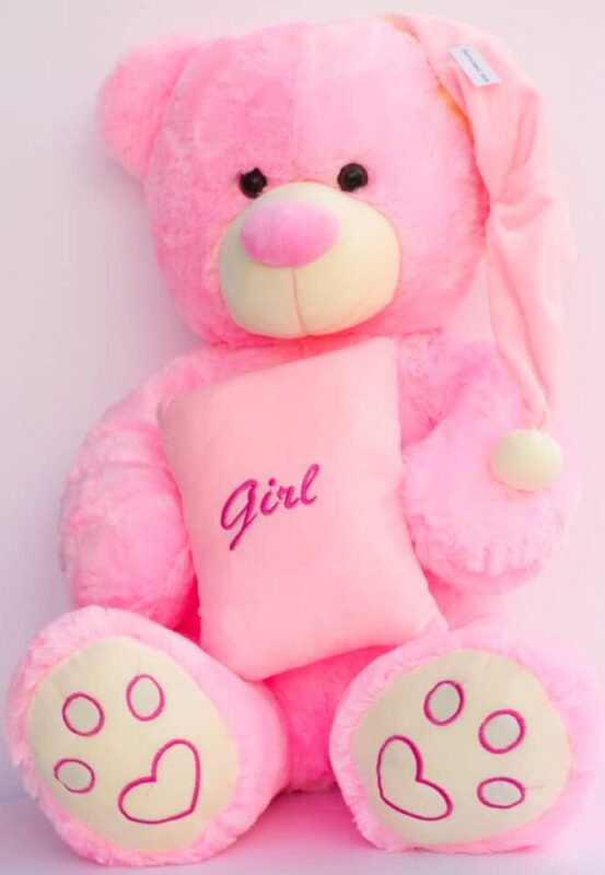Λούτρινος ροζ αρκούδος για νεογένητο κοριτσάκι 50cm